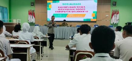 SOSIALISASI KEDISPLINAN SISWA OLEH POLSEK SOOKO DI SMPN 1 SOOKO