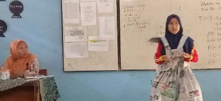 Seperti yang sedang dilaksanakan oleh kelas IX J yakni ujian praktik berpidato mata pelajaran Bahasa Indonesia. Rachmi Mutiara Intan (IX-J) berpidato tentang pengolahan sampah yang kian hari makin menumpuk. Intan berpidato dengan menggunakan kostum koran yang unik agar lebih menjiwai dalam berpidato. (snisfi18)