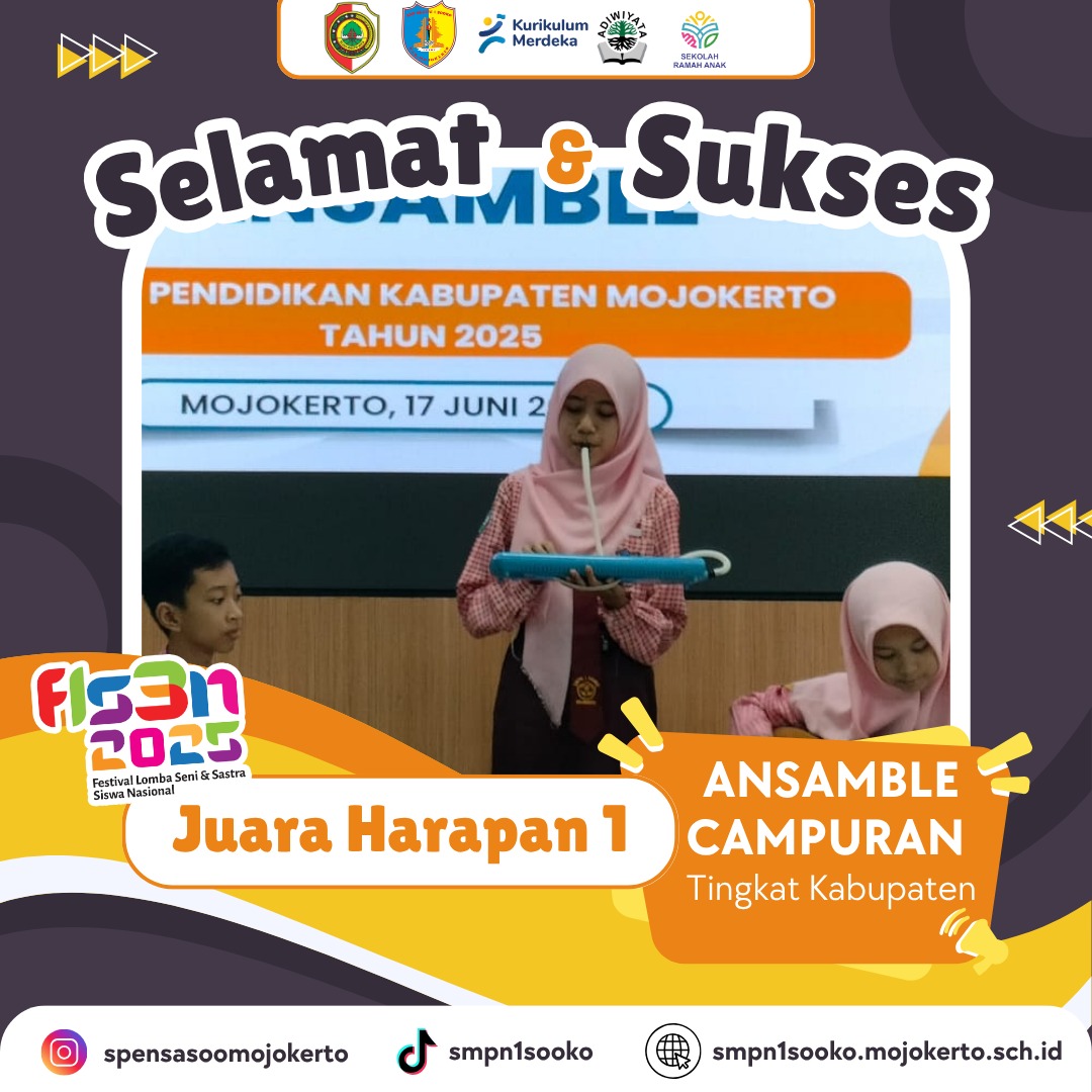 ![]() | FLS3N 2025 KABUPATEN MOJOKERTO Juara Harapan 3 Seni Musik Ansambel Campuran |