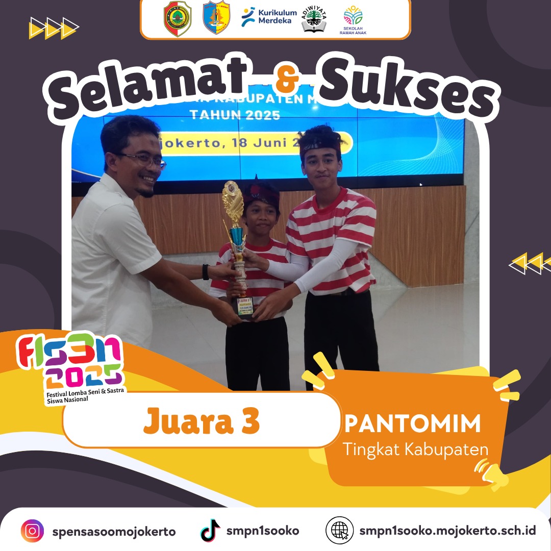 ![]() | FLS3N 2025 KABUPATEN MOJOKERTO Juara 3 Lomba Pantomim Tingkat Kabupaten |